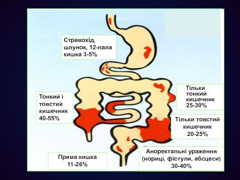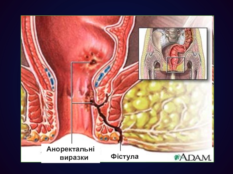У 80% хворих анальні тріщини. Особливість: менша болючість, в`ялість грануляцій;