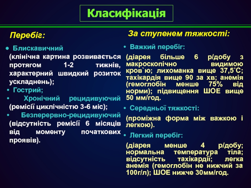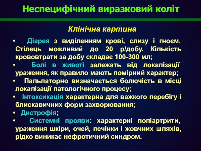 Виражена діарея (10-12 разів на добу) з домішками свіжої крові;
