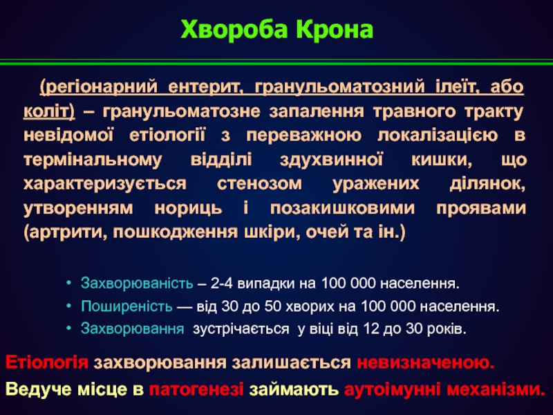 Інфліксімаб – химерні АТ до ФНП-α (при неефективності глюкокортикостероїдів і імуносупресорів) – 3-5 мг/кг в/в крап. протягом 2 год. Наступні введення через 2 і 6 тижнів.