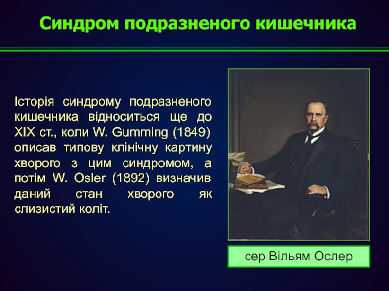 з цим синдромом, а потім W. Osler (1892) визначив даний стан хворого як слизистий коліт.