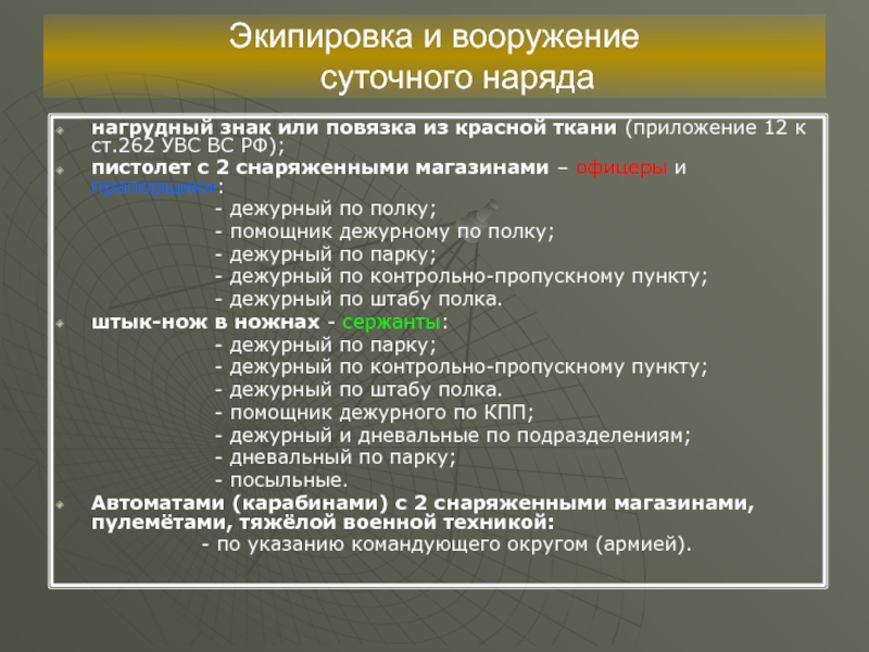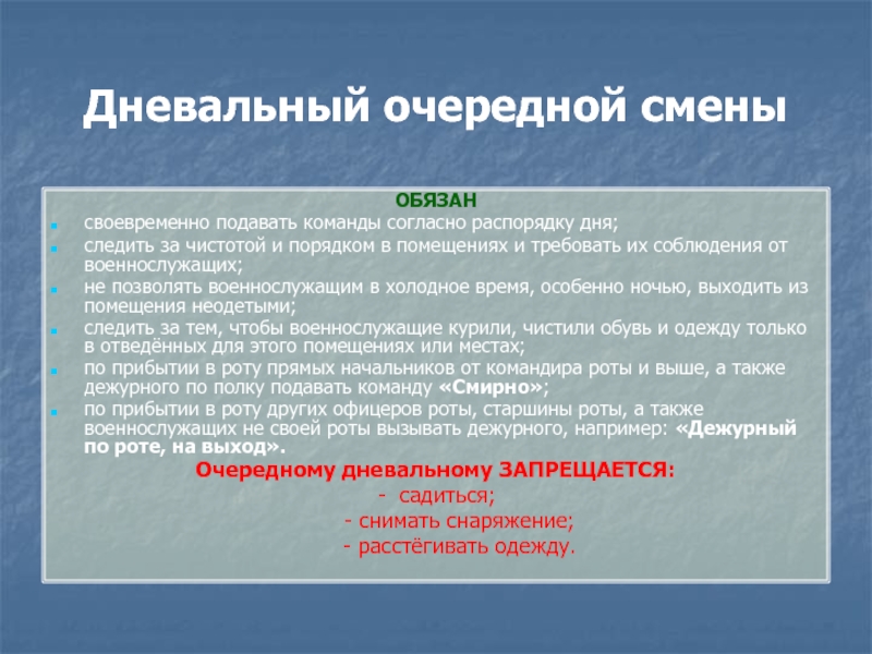 дежурный (офицеры, прапорщики, сержанты ) и дневальные