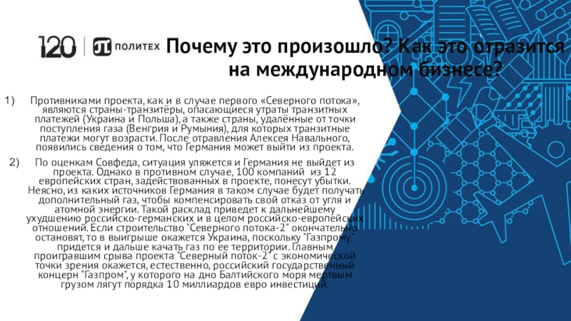 «Северный поток-2» в случае отказа Берлина от этого проекта. «Северный поток-2» - строящийся магистральный газопровод из России в Германию через Балтийское море длиной 1234 км, проходящий через исключительные экономические зоны и территориальные воды пяти стран.Выдрина Дарья гр.3733802/81502