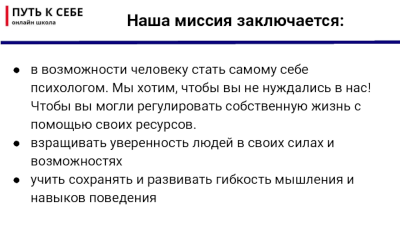 в возможности человеку стать самому себе психологом. Мы хотим,