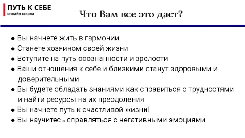 ● Вы будете обладать знаниями как справиться с трудностями и найти ресурсы на их преодоления