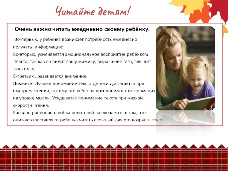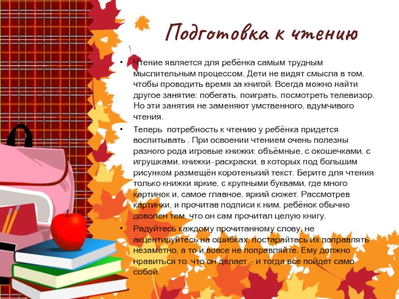 Радуйтесь каждому прочитанному слову, не акцентируйтесь на ошибках, постарайтесь их поправлять незаметно, а то и вовсе не поправляйте. Ему должно нравиться то, что он делает,- и тогда все пойдет само собой.