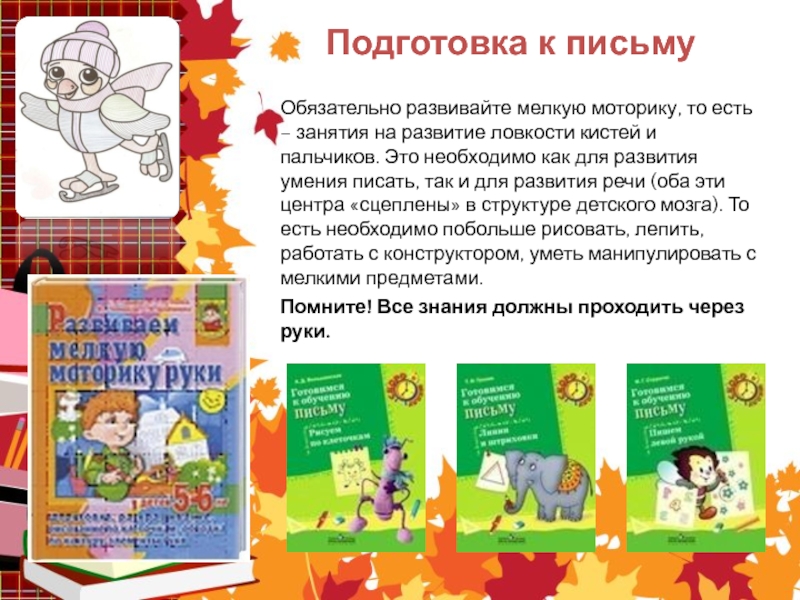 Слайд 38Обязательно развивайте мелкую моторику, то есть – занятия на развитие