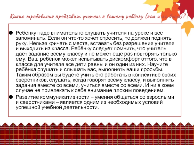 Слайд 21Какие требования предъявит учитель к вашему ребёнку (как и ко