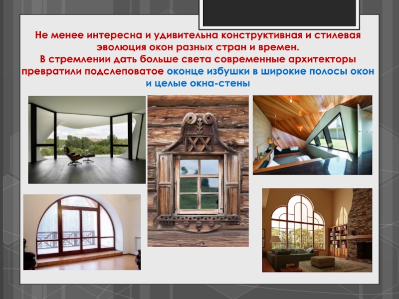 Какого бы вида ни были окна, они являются важным архитектурным элементом, не существующим вне стиля здания