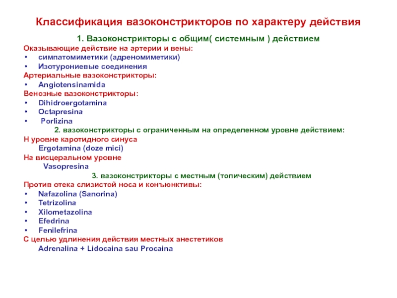 1. Вазоконстрикторы с общим( системным )