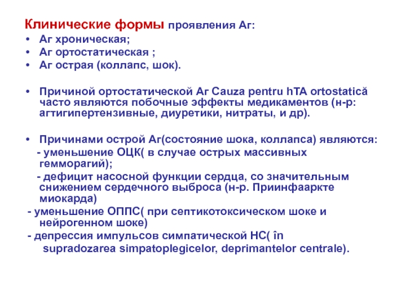 ортостатической Аг Cauza pentru hTA ortostatică часто являются побочные эффекты