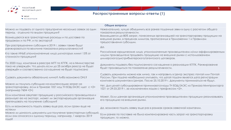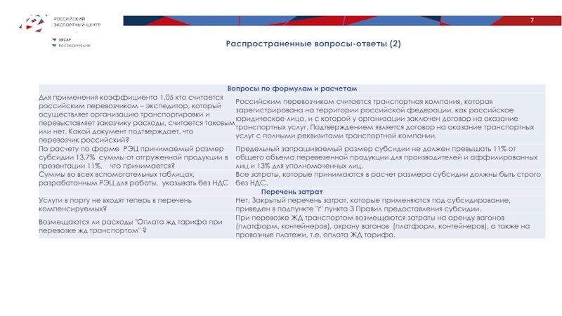 Пополняемая база наиболее часто возникающих вопросов- ответов по транспортной промышленной субсидии