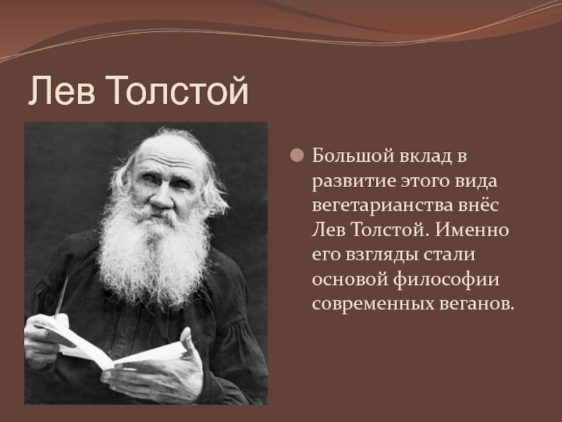 Толстой. Именно его взгляды стали основой философии современных веганов.