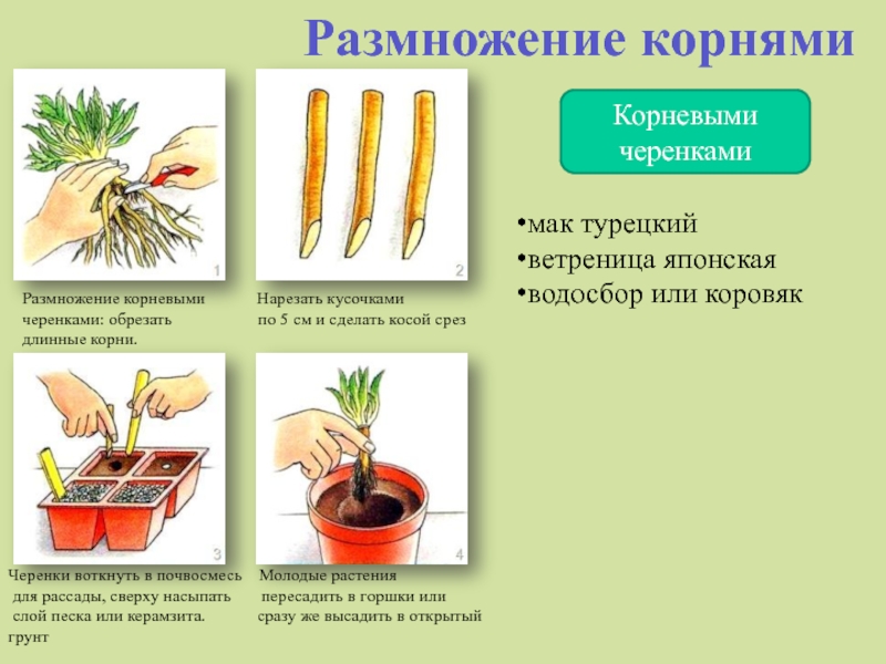 Черенки воткнуть в почвосмесь Молодые растения