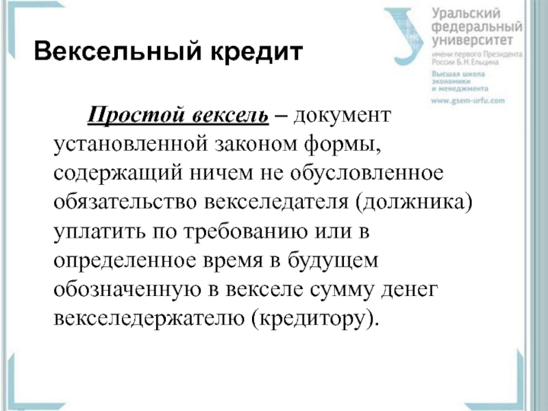 Слайд 1Вексельный кредит