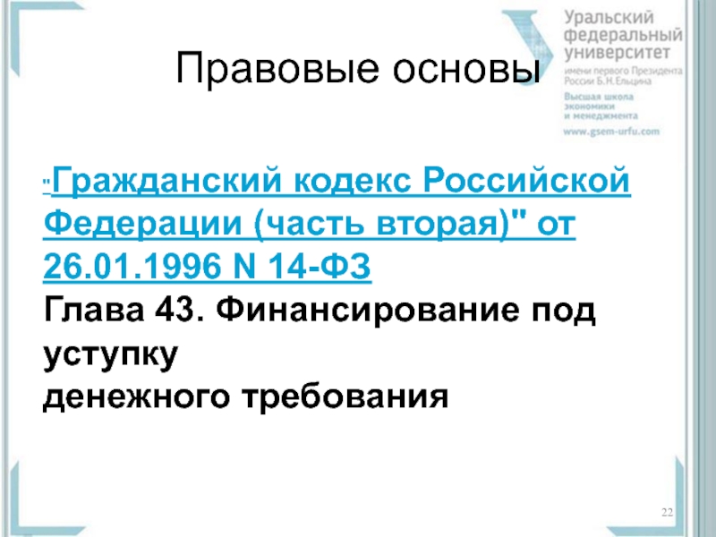 Слайд 22Правовые основы