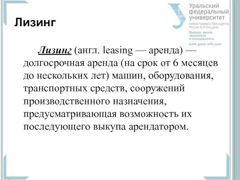Слайд 16Лизинг