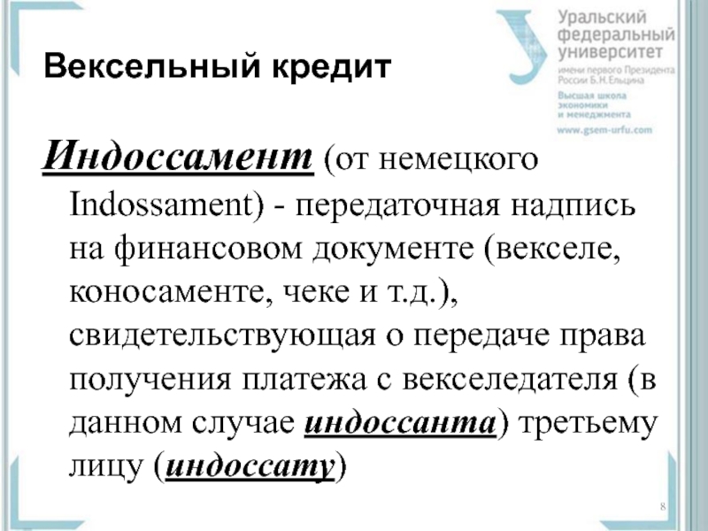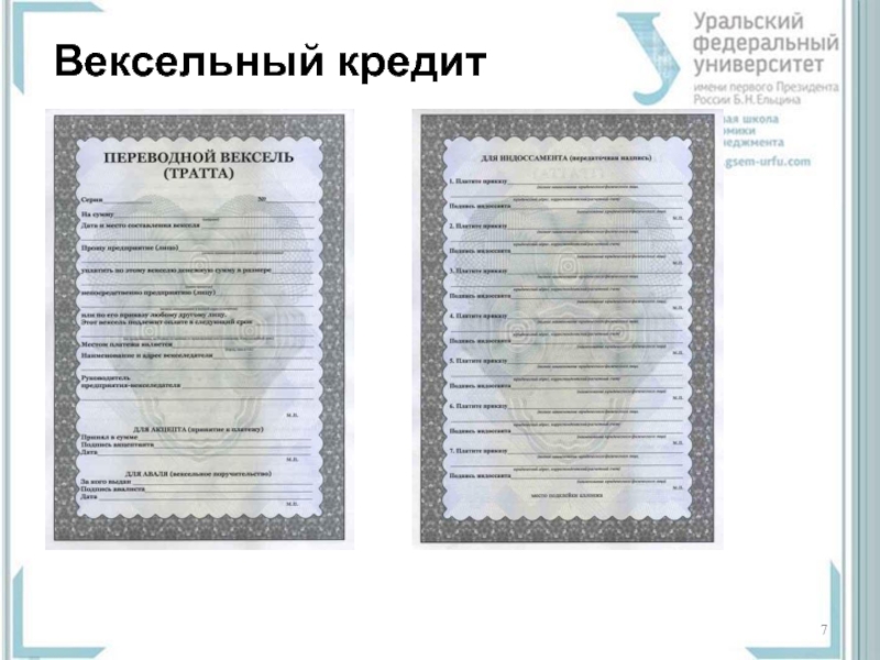 Слайд 8Вексельный кредит