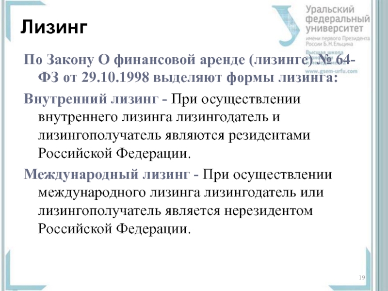 Слайд 19Лизинг
