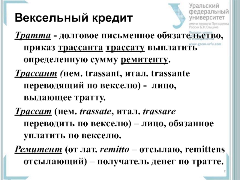 Слайд 5Вексельный кредит