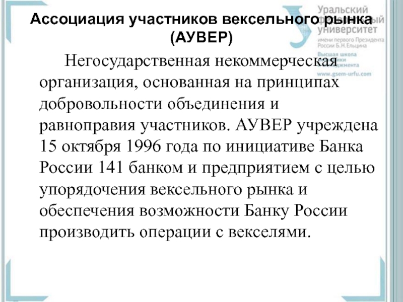 Слайд 10Ассоциация участников вексельного рынка (АУВЕР)