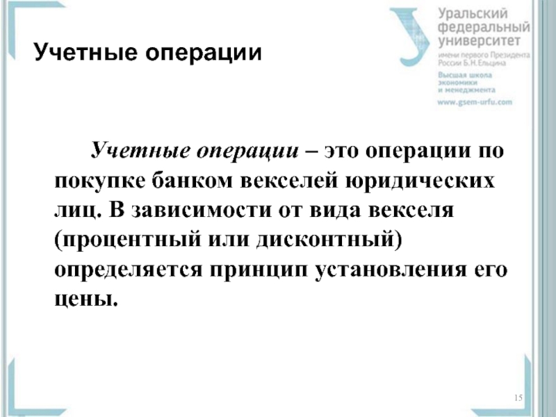 Учетные операции – это операции по покупке банком векселей