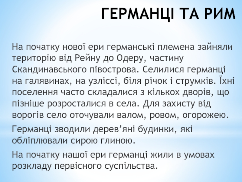 На початку нашої ери германці жили в умовах розкладу первісного суспільства.