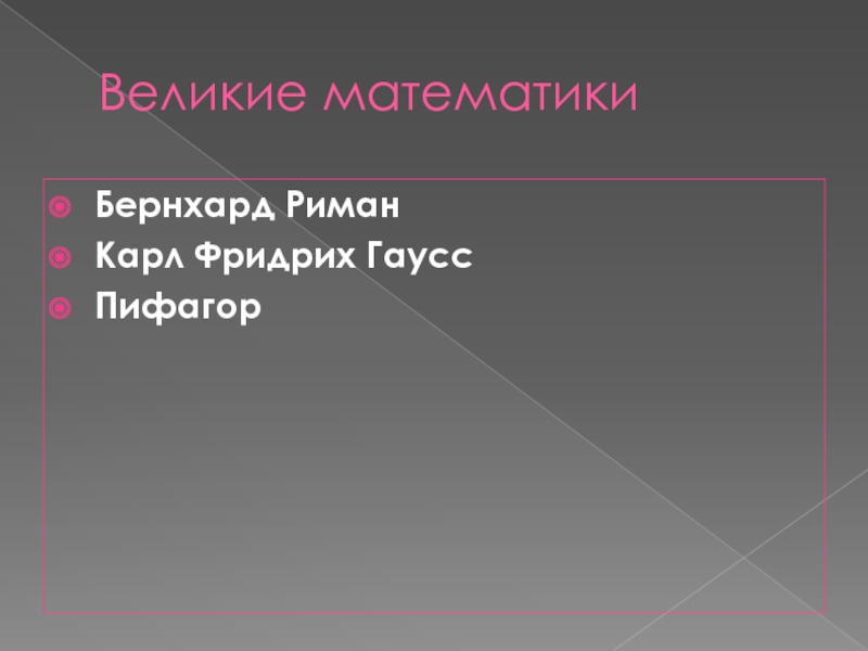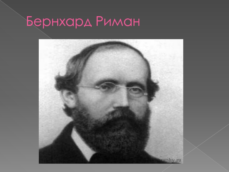 применение в теориях алгебраической геометрии, геометрии Римана и теории комплексного многообразия. Адольф Хурвиц и Феликс Кляйн доступно изложили теорию римановых поверхностей. Этот аспект математических знаний является основой топологии, и по сей день широко применяется в современной математической физике. Риман также совершил ряд поворотных открытий в теории «действительного анализа».Он ввёл «интеграл Римана», найденный посредством «сумм Римана», и вывел теорию тригонометрических рядов, отличную от рядов Фурье – первого шага на пути к теории обобщённых функций, а также определил «дифферинтеграл Римана-Лиувилля».