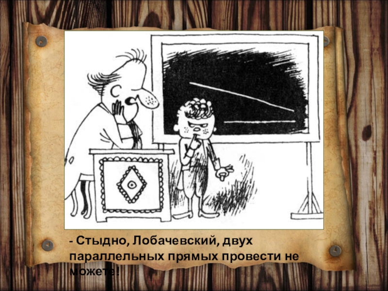 Слайд 15- Стыдно, Лобачевский, двух параллельных прямых провести не можете!
