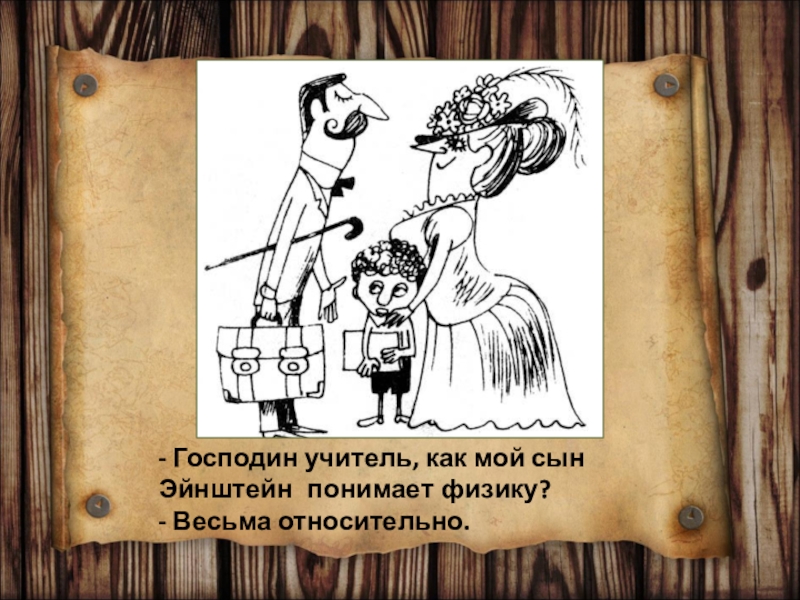 - Господин учитель, как мой сын Эйнштейн понимает физику?- Весьма относительно.