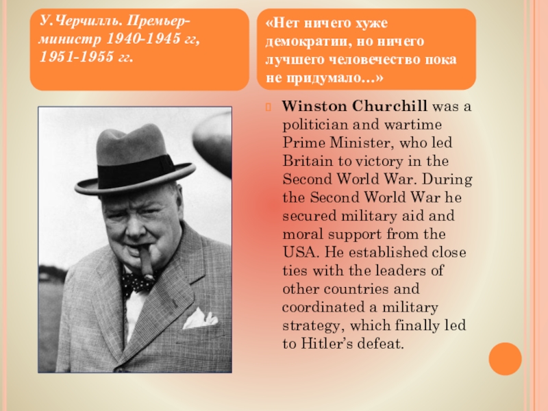У.Черчилль. Премьер-министр 1940-1945 гг, 1951-1955 гг.
