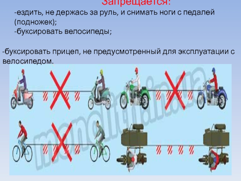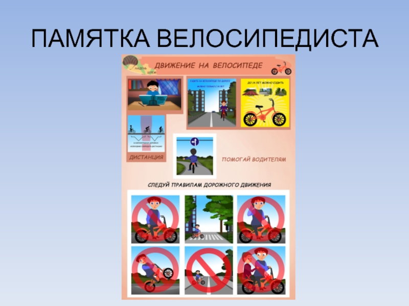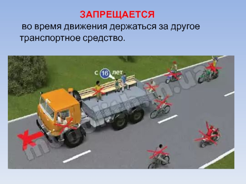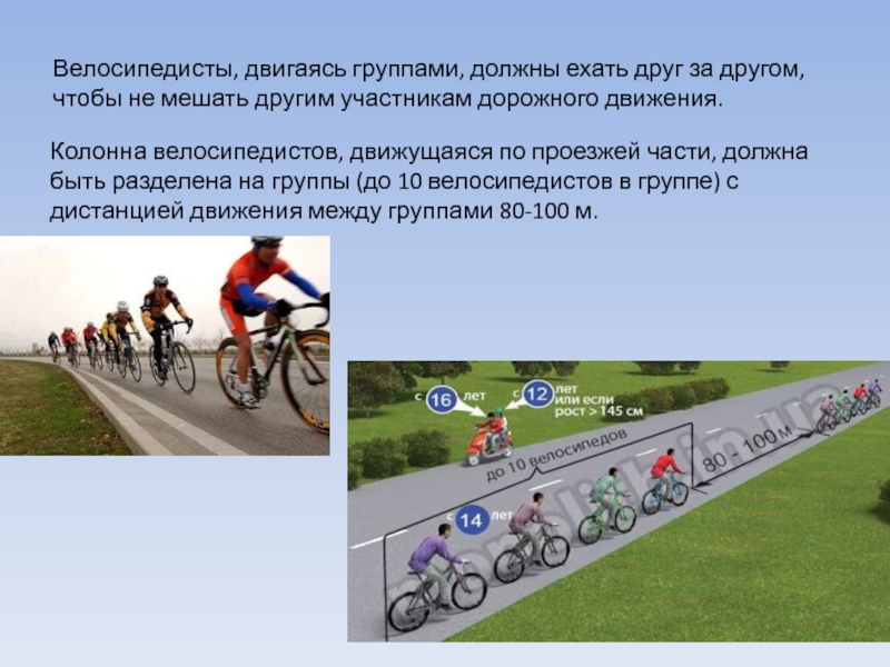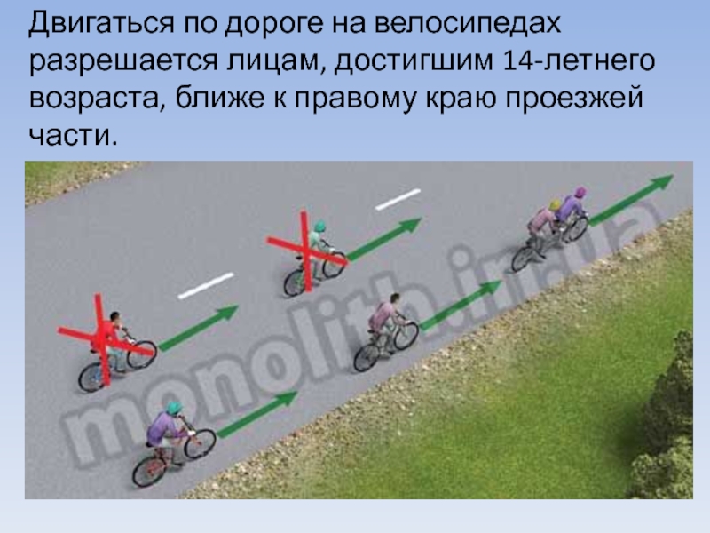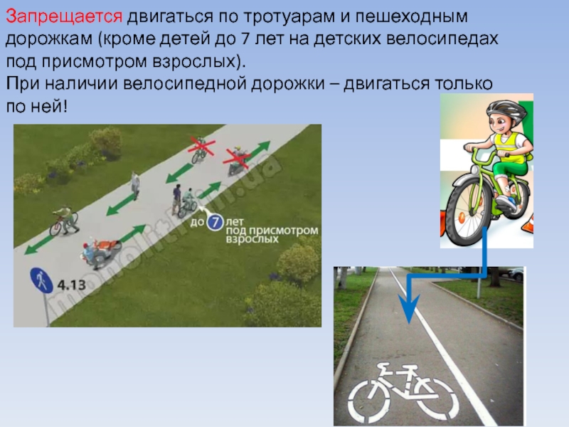 это главная фигура в обеспечении дорожного движения.• Управлять велосипедом при движении по дорогам Правилами дорожного движения разрешается лицам не моложе 14 лет, а мопедом – не моложе 16 лет.