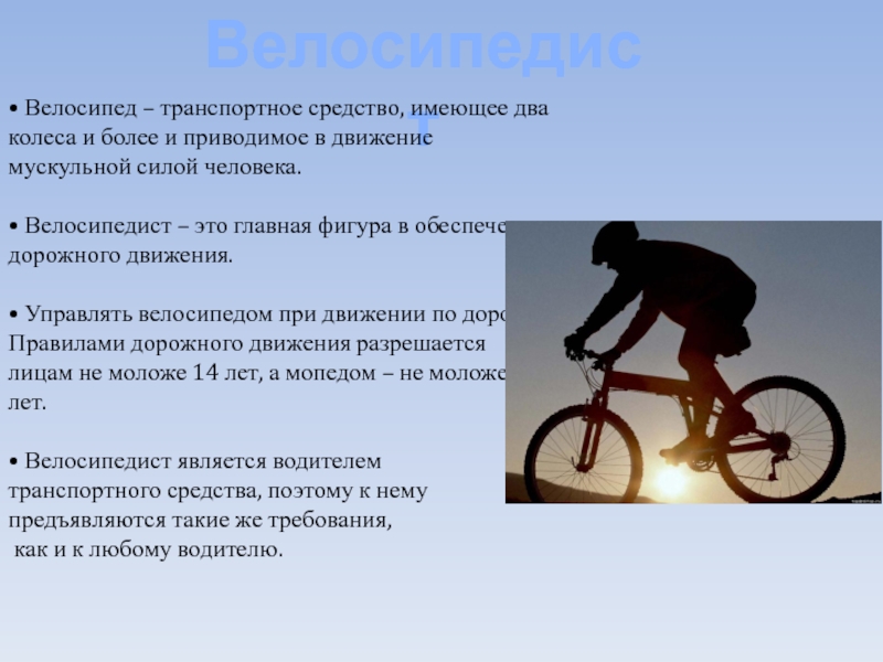 • Велосипедист является водителем