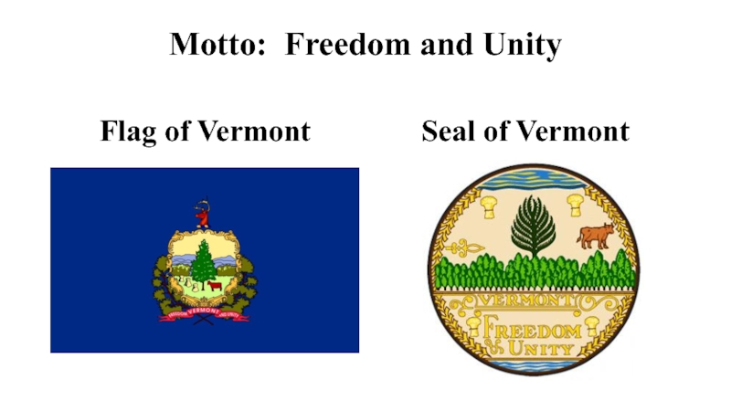 Motto:  Freedom and Unity  Flag of VermontSeal of Vermont