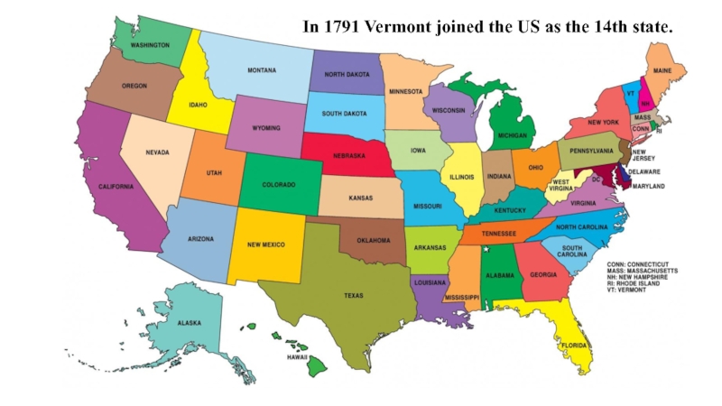 Слайд 2In 1791 Vermont joined the US as the 14th state.