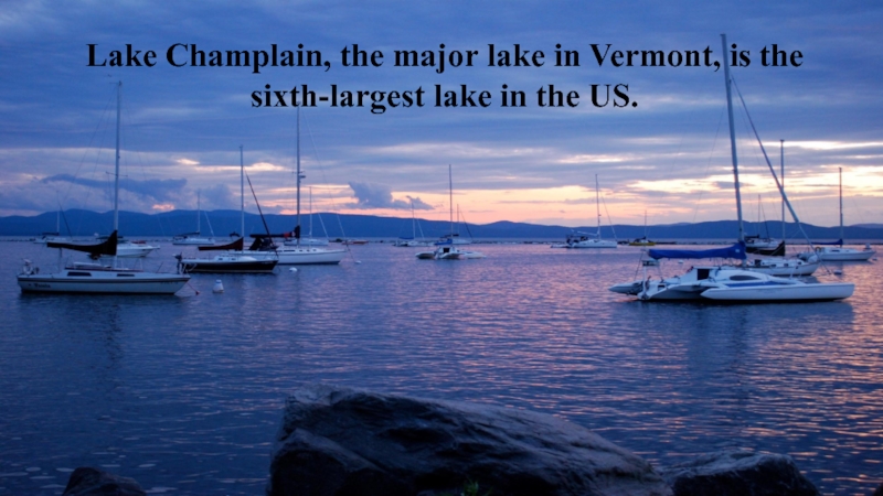 Слайд 9Lake Champlain, the major lake in Vermont, is the sixth-largest