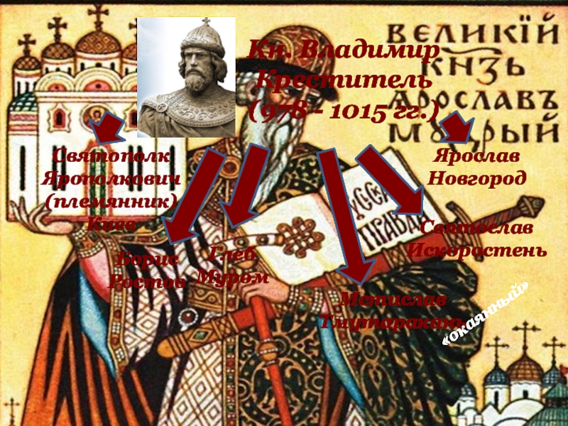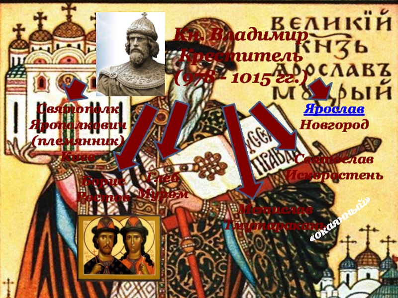 князь Владимир повелел опрокинуть идолы — одних изру-бить, а других