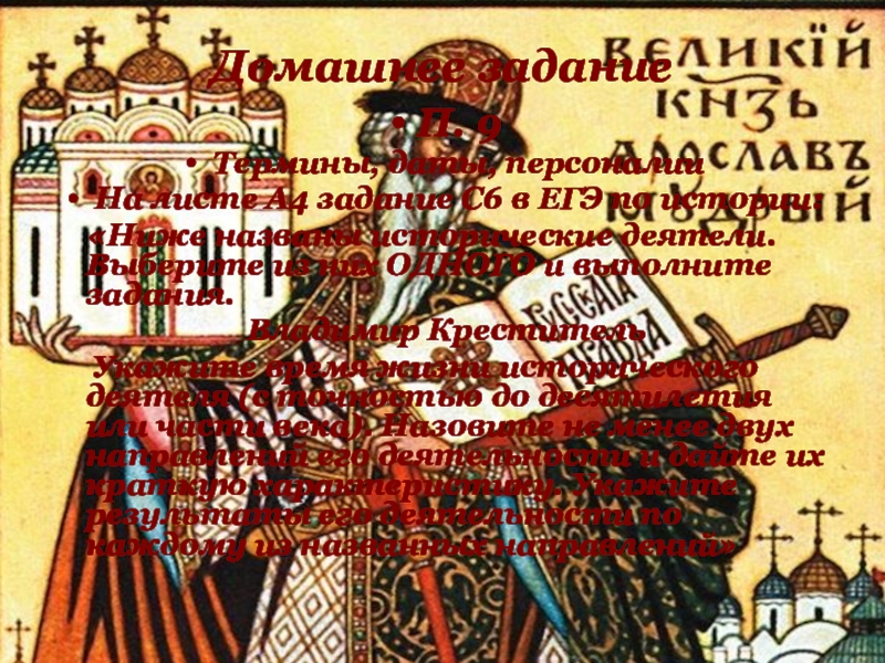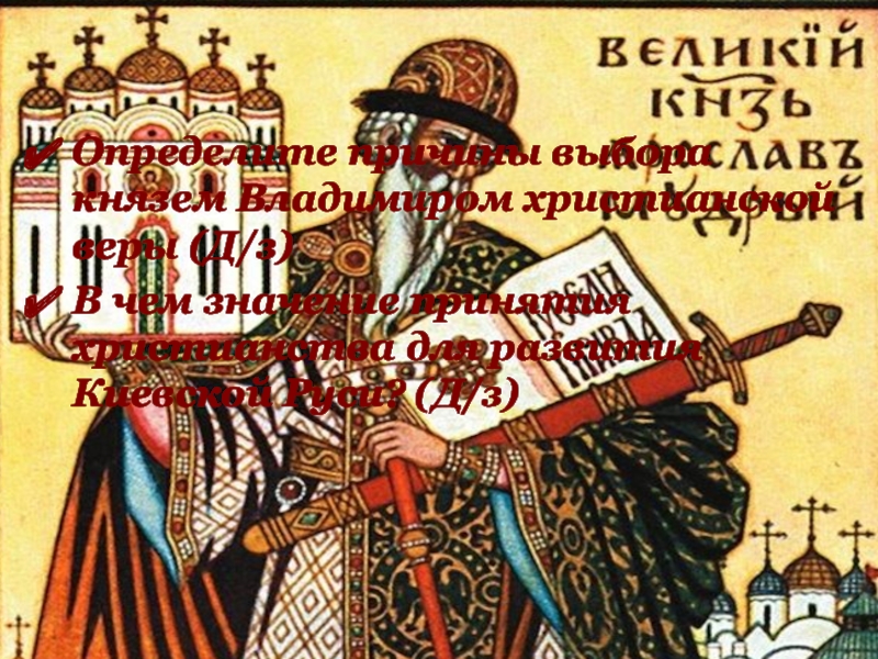 сжечь. Перуна же приказал привязать к хвосту коня и волочить его с горы по Боричеву взвозу к Ручью и приставил двенадцать мужей колотить его жезлами. Когда влекли Перуна по Ручью к Днепру, опла-кивали его неверные, так как не приняли еще они свя-того крещения. После расправы с Перуном и осталь-ными кумирами Владимир послал слуг своих по всему городу со словами: „Если не придет кто завтра на реку — будь то богатый, или бедный, или нищий, или раб — да будет мне враг“. Услышав это, с радостью пошли люди, ликуя и говоря: „Если бы не было это хорошо, не приняли бы это наш князь и бояре“. На следующий же день вышел Владимир с попами корсунскими на Днепр и сошлось там людей без числа. Вошли в воду там одни до шеи, другие по грудь, молодые же у берега по грудь, не-которые держали младенцев, а уже взрослые бродили, попы же совершали молитвы, стоя на месте. Люди же, крестившись, разошлись по домам» Повесть временных лет- Объясните противоречия в рассказе летописца