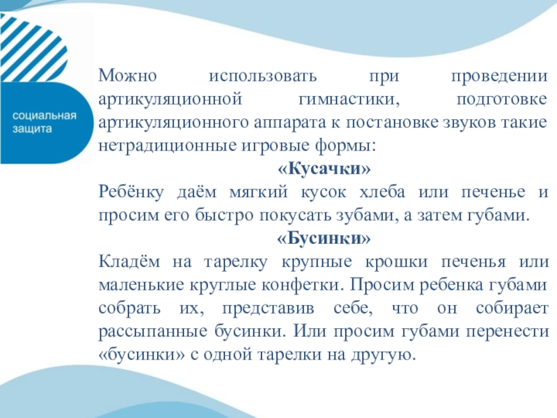 и т. д. для того, чтобы губы лучше складывались и тянулись трубочкой, взрослый надавливает слегка на уголки рта и выдвигает губы вперёд.