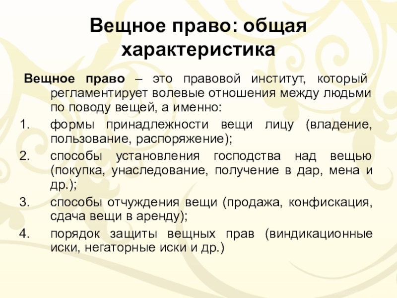 регламентирует волевые отношения между людьми по поводу вещей, а именно: