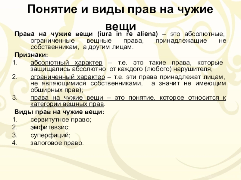 права на чужие вещи – это понятие, которое относится к категории вещных прав.
