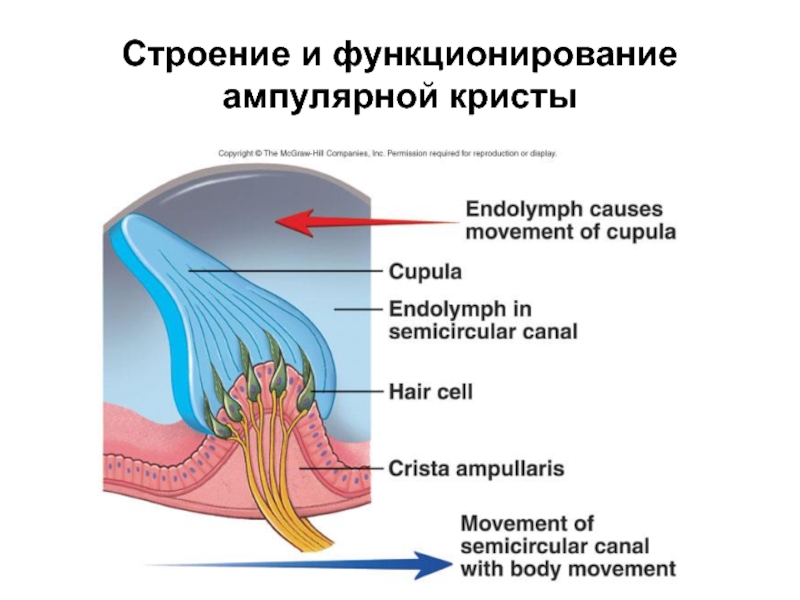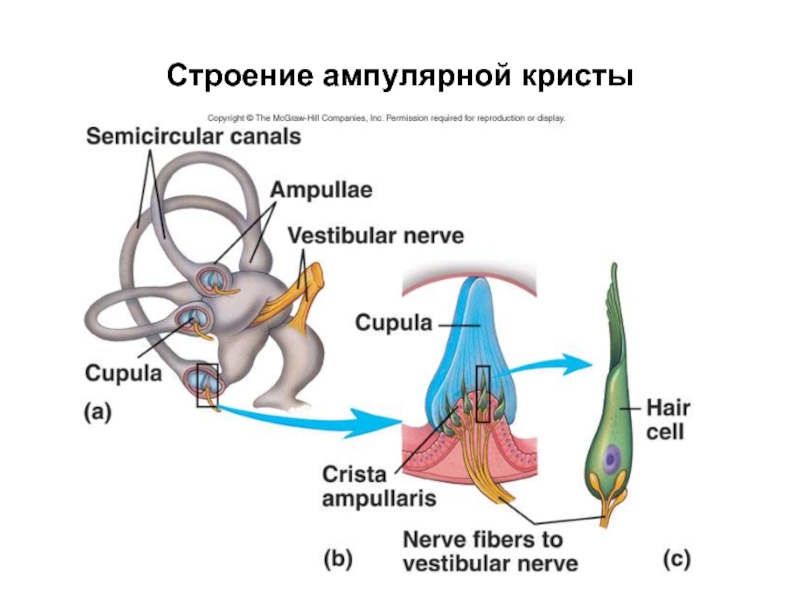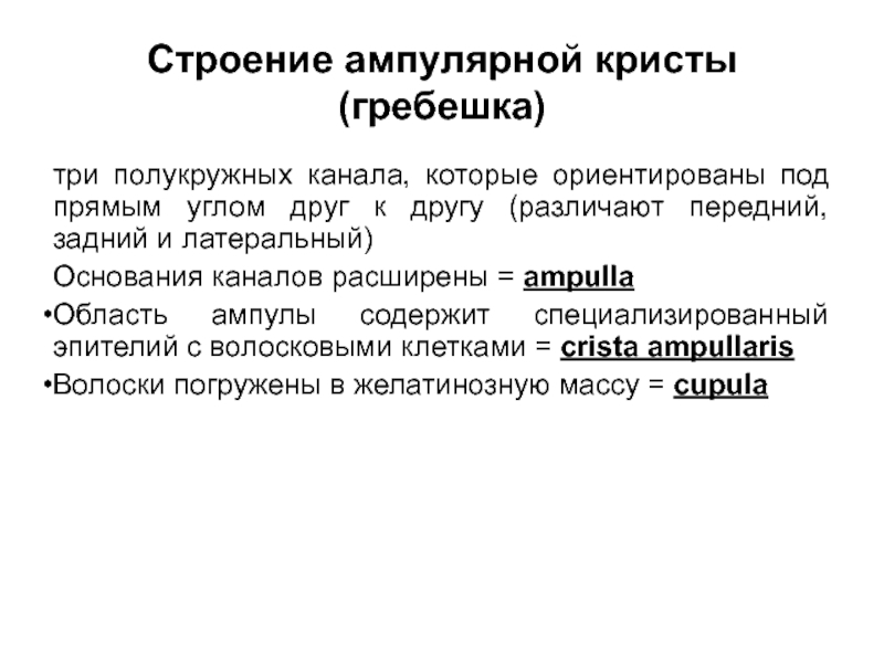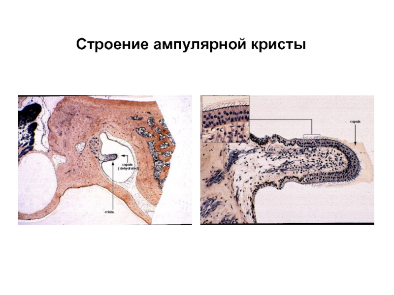 Слайд 25Строение ампулярной кристы (гребешка)