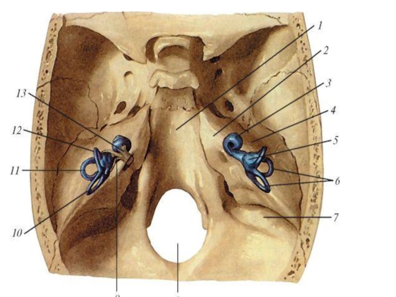 15 — передняя поверхность каменистой части височной кости; 16 —