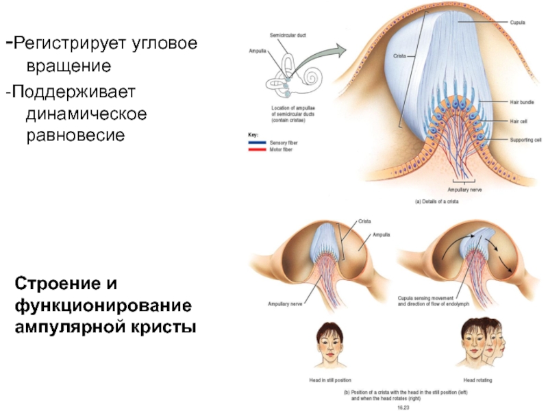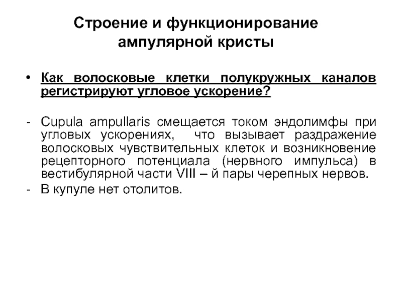 Cupula ampullaris смещается током эндолимфы при угловых ускорениях, что