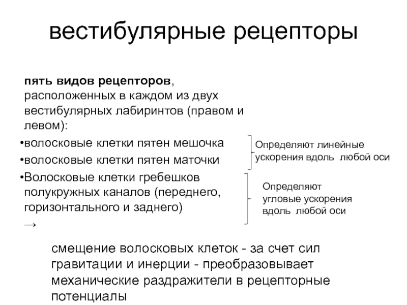 Слайд 14вестибулярные рецепторы