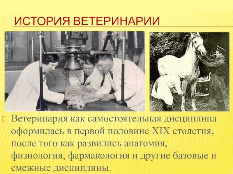 История ветеринарииВетеринария как самостоятельная дисциплина оформилась в первой половине XIX столетия, после того как развились анатомия,