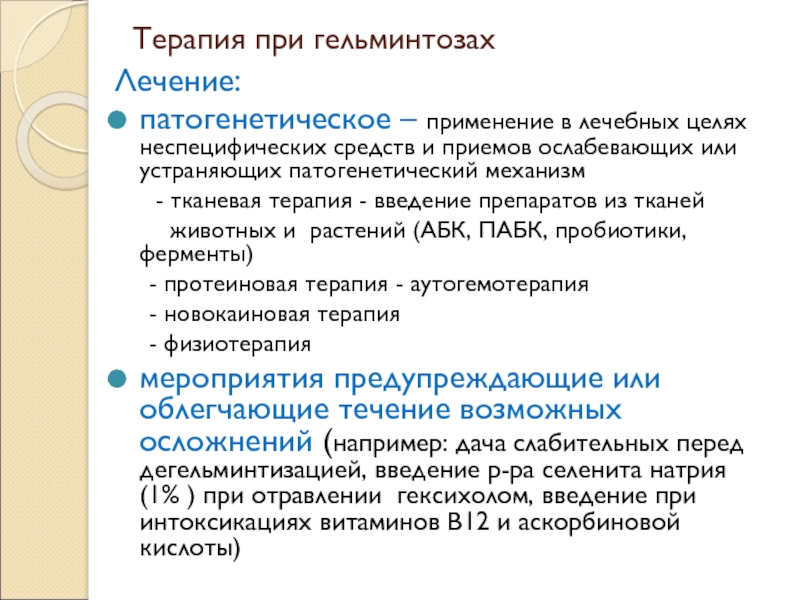 Слайд 15Терапия при гельминтозах