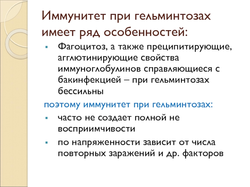 Слайд 12Иммунитет при гельминтозах имеет ряд особенностей: