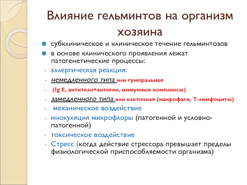 Слайд 7Влияние гельминтов на организм хозяина