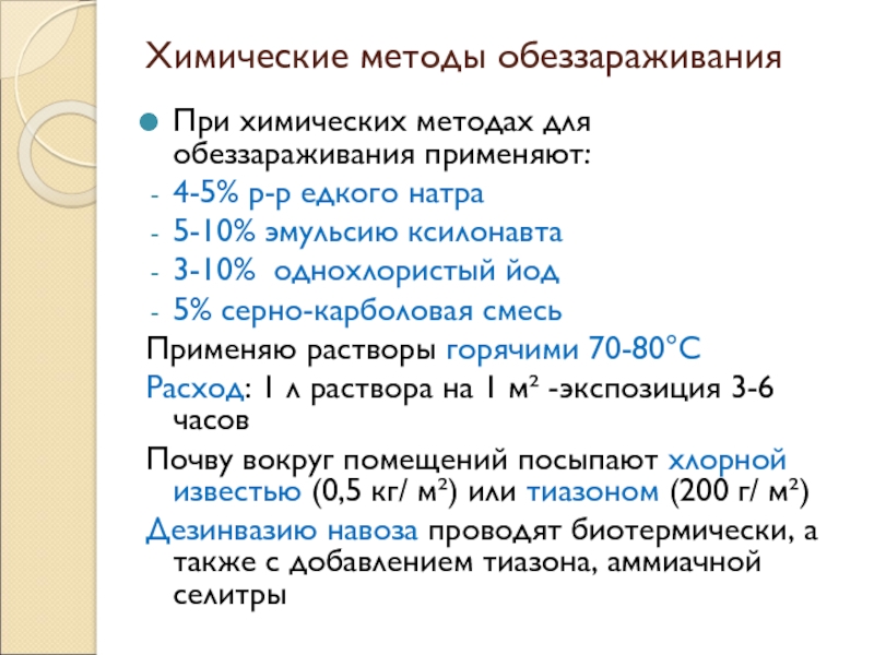 При химических методах для обеззараживания применяют: