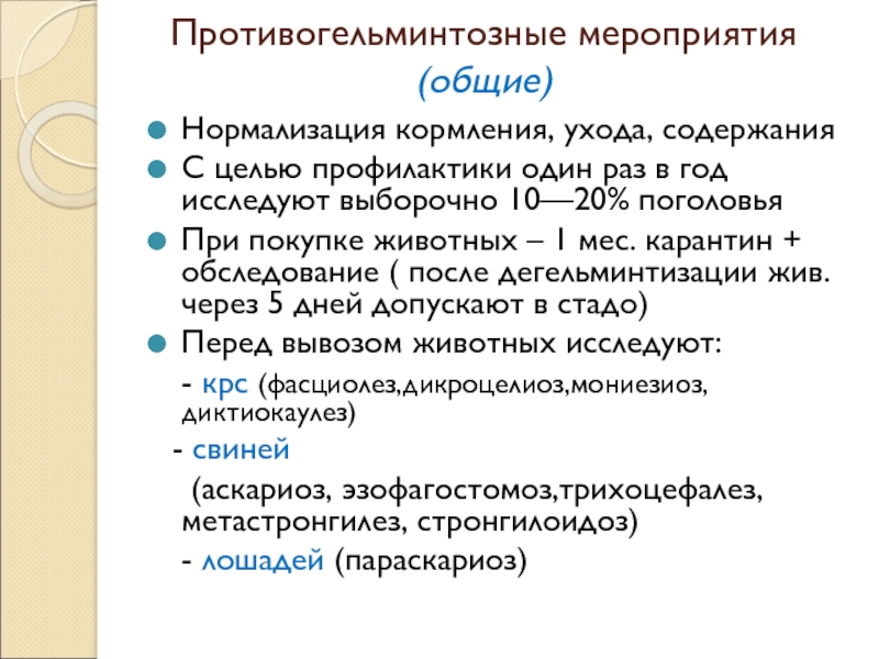 Слайд 14Противогельминтозные мероприятия (общие)